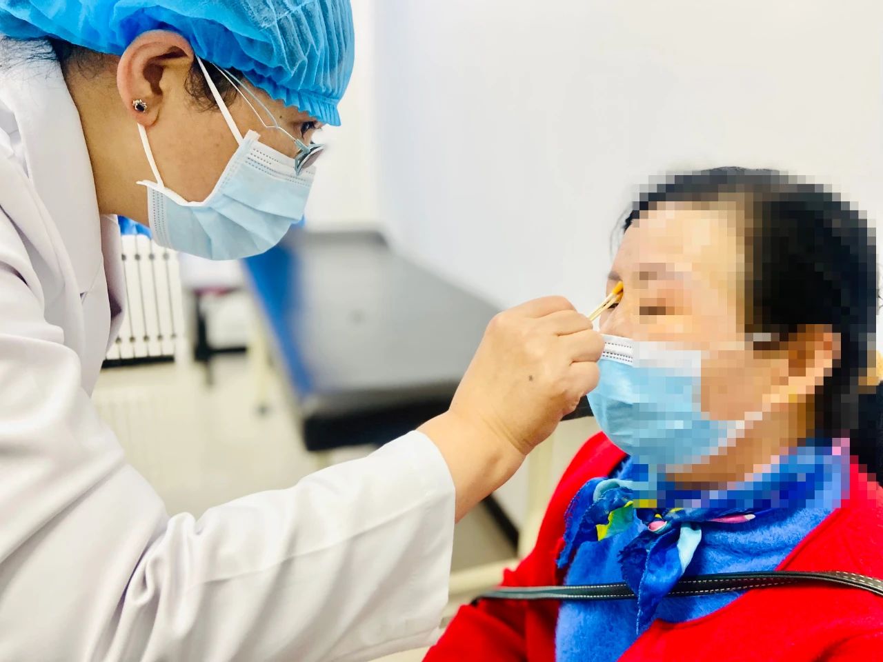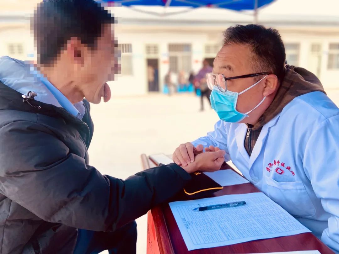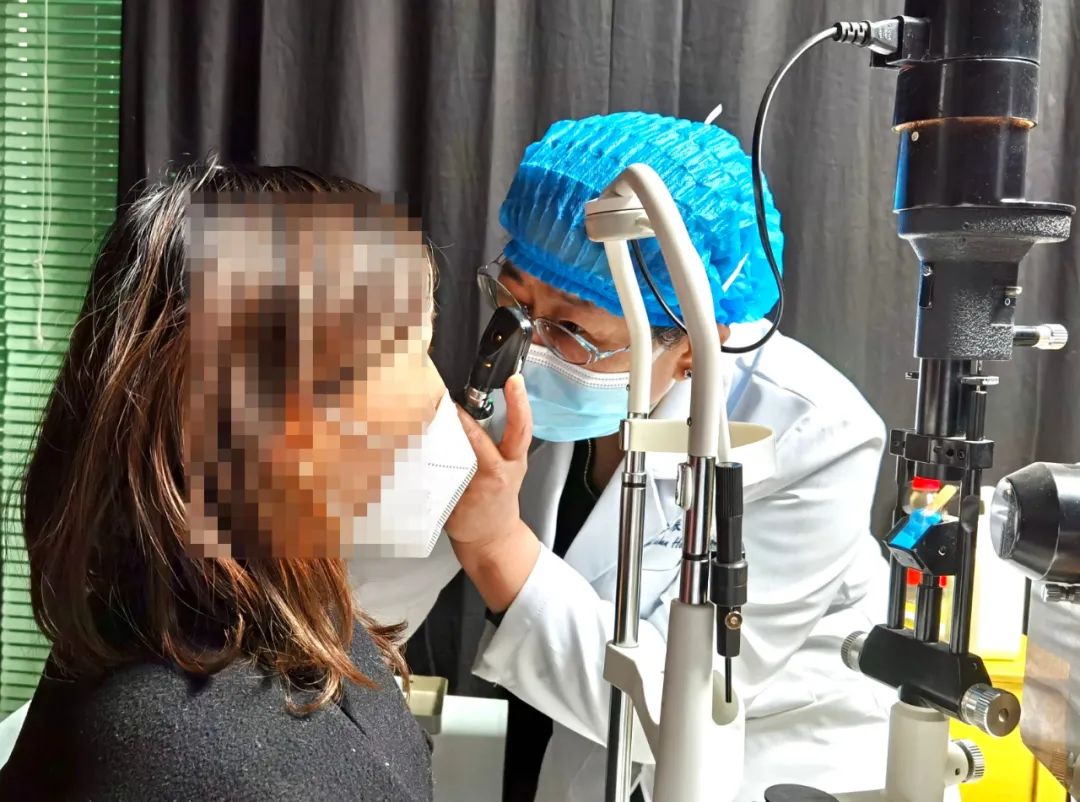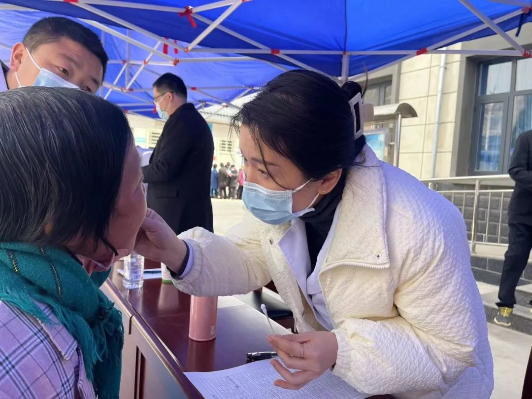 在义诊现场,肖博文主任为来看诊的群众现场开展眼科治疗,减少患者奔波往返于县医院,就近享受到优质、便捷的医疗服务,提高群众的获得感。
