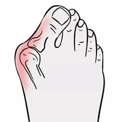 拇指外翻又称“大脚骨”,外观上是拇趾在第一跖趾关节处向外侧偏斜移位压迫第二脚趾,并且在拇趾内侧出现骨性突起。